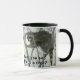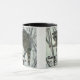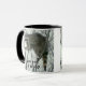 Branco e preto 11 oz. combinação de caneca com uma imagem, em ambos os lados, de um guaxinim em uma árvore e texto opcional.