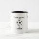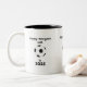 Uma caneca de dois tons na moda com um vibrante design de futebol e o texto "Feliz ano novo". Com um manípulo colorido e interior, é perfeito para os fãs de futebol apreciarem suas bebidas favoritas enquanto celebram a temporada!
