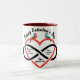 A parte externa da caneca apresenta uma base branca brilhante, com uma bela estampa,