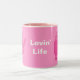 A caneca cor-de-rosa & branca bonito com os gatos de sorriso bonitos & engraçados dos desenhos animados e as cores do texto & do fundo' da vida" de "Lovin das palavras é inteiramente customizável - cargas das pias batismais & das cores escolher de. Escolha o estilo & a cor de sua caneca. Visite por favor minha loja sóbrio da princesa para presentes originais & do divertimento para pessoas na recuperação do álcool e da toxicodependência (e nos seus cães!) e presentes com mensagens espirituais/inspiradas. Todas as ilustrações criadas por um alcoólico na recuperação.