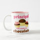 Design engraçado do humor da escola para o principal. Os cupcakes do chocolate com slogan que diz o principal - trabalharão para o chocolate. Presente original para seu principal favorito elementar ou de segundo grau.