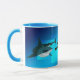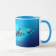 CANECA DO AZUL DE DIVERS´. Um mergulhador de mergulhador dos desenhos animados é seguido por um tubarão perigosamente grande. O mergulhador está olhando fixamente em um peixe pequeno curiosa e o peixe abre seus olhos grandes quando vê o tubarão que segue o mergulhador. Uma caneca projetada em máscaras diferentes do azul, também punho do de e interior é azul. Você pode escolher dos estilos diferentes das canecas e os colords, lá são igualmente a escolha de uma caneca morphing.