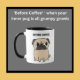 Comece seu dia com um traço de humor e beleza com este "Engraçado antes do café depois do café Pug Mug." Esta encantadora caneca apresenta um adorável vômito zangado com as palavras "Antes do Café" de um lado, e um vômito feliz com as palavras "Depois do Café" do outro lado. Esta caneca única captura sem esforço as expressões lúdicas de filhotes, fazer-a o companheiro perfeito para a sua rotina cafeeira. Aproveite a alegria do café com esta caneca que chama os olhos. Quer você esteja bebendo sua cerveja matinal ou desfrutando de uma picape do meio-dia, nosso Antes do Café Depois do Café Pug Mug vai adicionar um pouco de humor ao seu ritual diário de café. Deixem as expressões contrastantes dos filhotes espelharem seus sentimentos de café pré e poste, criando um começo alegre e divertido para o seu dia. Dar esta caneca de coração a qualquer amante de café ou guardá-la para você, e aproveitar os sorrisos que ela traz com cada gole.