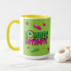 Um antídoto Zombie escuro, engraçado, engraçado... Shhh. Cheio Zombie antes de eu ter... Um globo ocular zumbi que pinga pílulas e cruzes coloridas num fundo verde brilhante. Com um Zombie para o indicador humano... perfeito para um café ou chocolate quente ou chá ou... Lover! Personalize! Escolha suas próprias cores e até escolha seu estilo de caneca favorito - uma cor que muda uma ou uma caneca colorida divertida com este design brilhante e bonito. Um "Fru" divertido só para você... este Halloween e para cada momento Zombie "Duck"! É divertido!