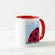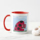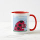 Esta adorável caneca de café apresenta uma joia engraçada e eufórica que fica entre um campo de grama verde, com aparência. É o presente perfeito para a natureza ou amantes de joaninha. É baseado em uma peça de arte original por © One Artsy Momma.