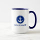 Âncora azul e branca náutica azul personalizado da caneca do nome do barco