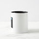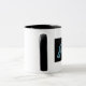 Desenho de uma pantera preta, esboçado no azul em uma caneca branca e preta