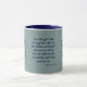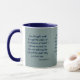 Esta caneca de dois tons apresenta uma fonte de impressão com o assobio com letras azuis marinhos mostrando o verso das escrituras de bíblia "Psalms 23:4 KJV" sobre um fundo verde-prateado. Este verso está referindo o Livro de Salmos 23º capítulo mostrando o 4º verso neste tema de citação de escrituras bíblias do Rei James bíblia. A jante e o manípulo são vidrados em cores compatíveis, disponíveis em micro-ondas e máquinas de lavar louça de tamanho 11 onças ou 15 onças, construindo cerâmica segura.