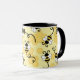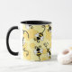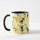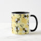 Padrão sem costura com pequenas abelhas voadoras bonitinhas e decoração de favos de mel em fundo amarelo pastel
