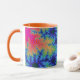 Esta caneca de café fractal colorida tem cores brilhantes e vibrantes como rosa, laranja e azul claro. Estas canecas têm várias cores diferentes para escolher entre a dentro e a alça da caneca. Além disso, você pode escolher entre o estilo e o tamanho dessas canecas. Estas canecas são excelentes para uso na cozinha e no escritório.