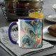 Esta caneca apresenta espirais luxuosas de azul com delicados sotaques de ouro. O design abstrato, melhorado por uma textura semelhante a mármore, adiciona um toque de sofisticação. Ideal para amantes de arte, profissionais e descobridores de elegância, faz um na moda adicional a qualquer casa ou escritório.