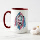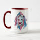 Esquadrão Suicida - Harley Quinn Ria. Virado para a frente em vermelho e azul. Na testa está escrito "Estou a Ver."
