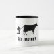 Esqui Indiana, caracterizando o design da silhueta de um esquiador que skitching ao sustentar a cauda de uma vaca