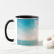 Uma caneca de orações inspiradora mostra uma fotografia da natureza com nuvens brancas e céus azuis sobre o oceano. Apresenta a Bíblia Verse Esther 4:14, "Talvez este seja o momento para o qual você foi criado."_