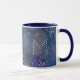 Caneca Estrelas Celestiais Nome Monograma Azul Aquarela