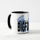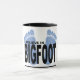 Pegadas enormes, acreditadas para ser do tipo legendário criatura do primata do homem que espreita profundamente nas florestas. Eu acredito em BIGFOOT sou escrito em letras grandes, corajosas, com sala adicionar suas próprias cidade/cidade e indicar/província ou texto engraçado do sasquatch.