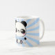 As pandas precisam seu amor demasiado! Uma panda do kawaii que guardara uma bandeira que me diga "ama a panda" sobre um teste padrão do sol de ascensão.