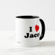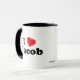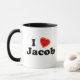 Eu amo Jacob! É seu nome Jacob? Você tem uma esposa, um namorada, um membro da família fêmea ou um amigo fêmea que você saiba amores você? Ou você tem um marido, um namorado, um membro da família masculino ou um homem Jacob nomeado amigo quem você ame profundamente? Em caso afirmativo, este "que eu amo" a caneca é exatamente o presente que você está procurando! As características de design a letra "mim" na rotulação preta com um coração vermelho na parte superior e no "Jacob" na rotulação preta na parte inferior.