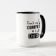 Toque inteligente meu computador eu cortá-lo-ei caneca da tipografia. O texto no preto lê o toque meu computador que eu CTRL X (corte) você. A caneca de café engraçada do escritório da informática, viaja muito ou caneca de cerveja da cerveja. Presente inteligente para programadores de computador. Humor do geek. Design em ambos os lados da caneca.