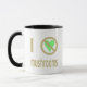 Eu odeio cogumelos. O design usa letras bege, um coração verde e o sinal internacional "NÃO" para ler "Eu odeio cogumelos". Para aqueles que não "amam" eles, realmente os odeiam, mas têm senso de humor, amam rir e têm o osso do humor tickled.