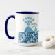 Eu Te Amo! Baleia azul branca nadando em caneca de coração.
