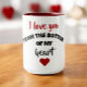 Expresse seus mais profundos afetos com esta encantadora caneca de café "Eu te amo do fundo do meu coração". Com uma mistura elegante de letras maiúsculas e caligrafia, acentuada por um coração vermelho clássico, este design é tão caloroso quanto o café que contém. A caneca apresenta um belo interior vermelho profundo e uma alça para complementar perfeitamente o gráfico.