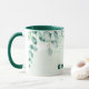 Um fundo verde, branco, de cor aquosa. Decorado com folhagem de eucalipto verde e fenda de floresta. Personalize e adicione um nome.