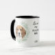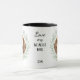 "LOVE MY BEAGLE DOG" declares this mug for the proud Beagle dog owner. Each side of the mug has a beautiful portrait of a Beagle Hound Dog framed by soft green watercolor eucalyptus leaves. Between the two images is the text, which may be easily customized, or even removed by you, and your monogram or name.