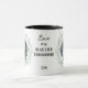 "LOVE MY BLUETICK COONHOUND" declares this mug for the proud Coonhound dog owner. Each side of the mug has a beautiful portrait of a Bluetick Coonhound Dog framed by soft green watercolor eucalyptus leaves. Between the two images is the text, which may be easily customized, or even removed by you, and your monogram or name.