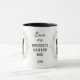 "LOVE MY BRUSSELS GRIFFON DOG" declares this mug for the Brussels Griffon dog owner. Each side of the mug has an adorable portrait of a little Brussels Griffon framed by soft green watercolor eucalyptus leaves. Between the two images is the text, which may be easily customized, or even removed by you, and your monogram or name.