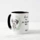 "LOVE MY DALMATIAN DOG" declares this mug for the proud Dal dog owner. Each side of the mug has a beautiful watercolor portrait of a Dalmatian dog framed by soft green watercolor eucalyptus leaves. Between the two images is the text, which may be easily customized, or even removed by you, and your monogram or name.