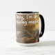 Late afternoon light spills across a warm living room. A young man slouches on a brown sofa, dark circles beneath tired eyes, phone in hand. The fridge glows nearby, full of snacks, takeout, and produce, yet he can’t summon the energy to eat. Crumbs and open snack bags litter the coffee table, telling the story of small procrastinations and modern life humor. This mug captures the irony of being surrounded by food while mentally absorbed in the endless scroll.