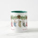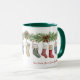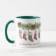 Esta caneca apresenta 11 meias de Natal penduradas abaixo de um banho festivo de férias. Você pode personalizar as meias com 11 nomes diferentes. Perfeito para uma família grande, ou para uma família com muitos animais de estimação ou para um avô com muitos netos.
