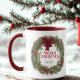 Celebrar as férias com um toque festivo de fazenda usando esta charmosa caneca de Natal. A camada clássica de cor d'água do pinheiro, do Holly e do eucalipto é amarrada com um grande arco de xadrez de búfalo vermelho para um estilo de feriado eterno. Ideal para beber café, chá ou sidra mulled, esta caneca faz um delicioso presente sazonal para os entes queridos ou uma adição alegre à sua própria cozinha de férias. Personalize-o por uma manutenção única que combina a conforto da fazenda moderna com a tradição natalícia.