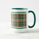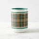 Uma caneca de café com o clã tartan Farrell, um padrão clássico de xadrez em tom e verde, com sotaques amarelo, preto e branco brilhantes. Cinco estilos disponíveis em dois tamanhos.