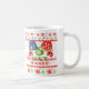 Seu partido festivo e da camisola feia do Natal ou do feriado do divertimento estará mais completo com esta caneca cerâmica personalizada como um prêmio para o vencedor da competição feia da camisola. As duas camisolas foleiros saltam fora do vermelho, branco e os flocos de neve verdes modelam o fundo com um ornamento verde de suspensão, os dois pares de mitenes, um boneco de neve, o bastão de doces, a meia e as cabeças do papai noel. Apenas adicione o ano na caixa de texto fornecida ou personalize-o como você quer. Se você precisa alguma ajuda que personaliza esta caneca cómico para seu partido, envie por correio electrónico niteowlstudio@gmail.com.