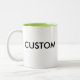 Caneca cerâmica feita sob encomenda do Dois-Tom 11oz - VERDE LIMÃO para dentro, 4,8" altamente x 3,2" diâmetro. opções de 11 onças ou de 15 onças. Microonda e cofre forte da máquina de lavar louça. Segurança da comida e da bebida de FDA aprovada. Enegreça, cimente, maroon, azuis marinhos, laranja, rosa, vermelho, amarelo, verde de caçador, e luz - opções azuis da cor.
