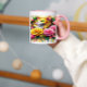 Caneca Feline em meio a um Blogue Floral Vibrante