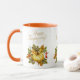 Caneca Feliz Ação de Graças Aquarela Pumpkin, Rosa Hips