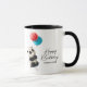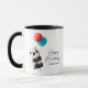 Feliz Aniversário Cute Panda Personalizada Coffee Tea Mug apresenta uma aquarela fofinha Panda segurando balões com o texto "Feliz Aniversário" em um roteiro de caligrafia moderno e personalizado com seu nome personalizado. Perfeito para presentes de aniversário. Elaborado por ©Evco Studio www.zazzle.com/store/evcostudio