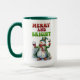 Uma design de Natal engraçada e alegre mostra um boneco de neve alegre vestido em um longo casaco verde com um chapéu igual, lenço vermelho e luvas. Ele segura uma taça de vinho tinto em uma mão e vinho branco na outra. O texto festivo vermelho e verde diz, "Feliz e brilhante." Esta design está disponível numa variedade de produtos, fazer-a um presente perfeito para amantes de vinho.