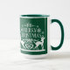 Comece as suas comemorações de férias com estilo com esta caneca festiva, mas clássica. Mostrado em um verde com um gráfico de filigrana, renas, flocos de neve e as palavras Feliz Natal em Branco, é perfeito para tomar seu café da manhã cedo ou algum chocolate quente. Interior verde e alça. Faz um presente de excelente também. Personalize este item ou comprar conforme mostrado.