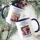 Esta caneca azul e branca de 2 tons marinho faz um presente de natal divertido para o seu filho. Para alterar o texto e a foto, clique no botão personalizar.