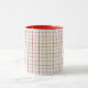 Uma caneca de Natal moderna e minimalista, com um padrão de grelha festiva e um arco bege que lê "Feliz Natal". Perfeito para bebidas aconchegantes de inverno ou para dar aos entes queridos. É trendy, colorido e moderno, com a reviravolta festiva perfeita!