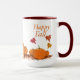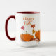 Grandes abóboras laranja sentadas numa cama de folhas de outono com lindas, multicoloridas folhas de carteiro caindo, esta é uma cena perfeita de Feliz Queda.