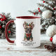 Feliz Woofmas French Bulldog Frenchie Christmas Coffee Mug apresenta um bonito cão de cão que veste galhadas com presentes de Natal e o texto "Feliz Woofmas (nome)" na tipografia moderna. Perfeito para o Natal e feriados como presentes para familiares e amigos, amantes de cães, mães de cães, pais de cães, babás e muito mais. Personalize editando o texto na caixa de texto fornecida. Criado pelo Evco Studio www.zazzle.com/store/evcostudio