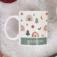 Feriados Festivos Festivos Festivos Feriados Nome Padrão Café Mug apresenta um padrão fofo de arco-íris festivos, árvores de Natal, luas crescentes, decorações, estrelas e folhas sagradas. Personalize com seu nome editando o texto na caixa de texto fornecida. Elaborado por ©Evco Holidays www.zazzle.com/store/evcoholidays