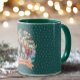 Celebre a temporada de festas com nossa "Festiva Floral Wreath Green Photo Christmas Mug". Esta caneca maravilhosamente projetada apresenta uma delicada e desenhada coroa floral em tons suaves e sujos, cercando uma foto personalizável de sua escolha. Colocada contra um fundo festivo verde de Natal com bolinhas sutis, esta caneca traz um senso de calor e charme sazonal a cada gole. Perfeito para as manhãs de feriado ou como presente pensativo, esta caneca adiciona um toque elegante e personalizado às suas comemorações festivas.