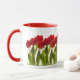 Arte digital da natureza feminino criada de uma fotografia das tulipas brilhantes do primavera vermelho que estão em seguido contra um fundo transparente com a grama digital que sublinha o.
