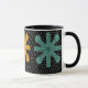 Esta caneca tem uma design moderna do século Médio de estrelas em cores retrógradas em um campo de preto.